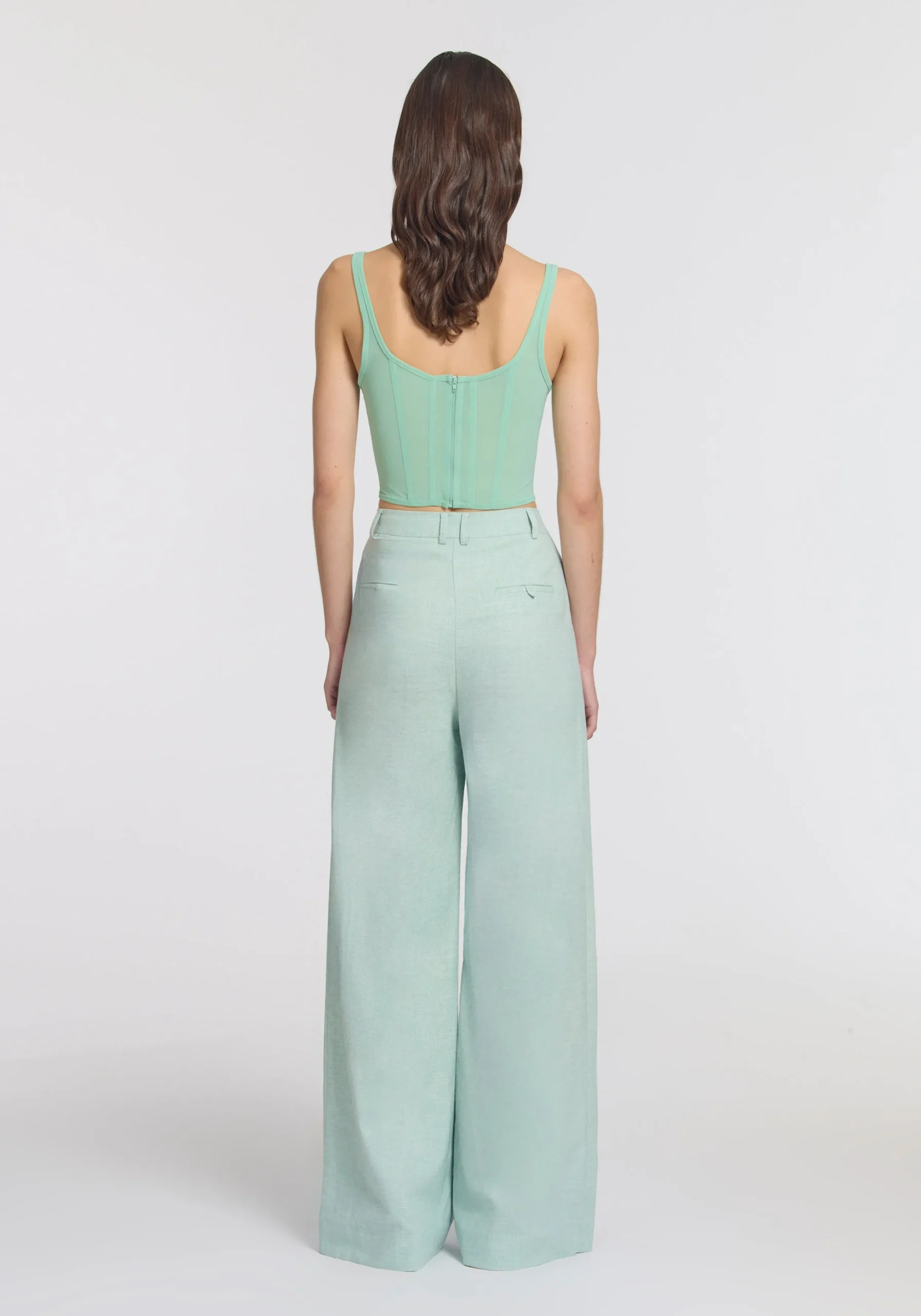 The Wanderlust Bustier, crafted from signature V&W powermesh in a refreshing mint hue, brings a cool burst of vibrancy to occasion dressing. Featuring a sweetheart neckline with pleated bust cups, panelled boning, and a softly curved hem, it creates a flattering, sculpted silhouette. Complete the look with the Roxbury Trouser and Paradox Blazer for a striking all mint moment.MADE IN AUSTRALIA