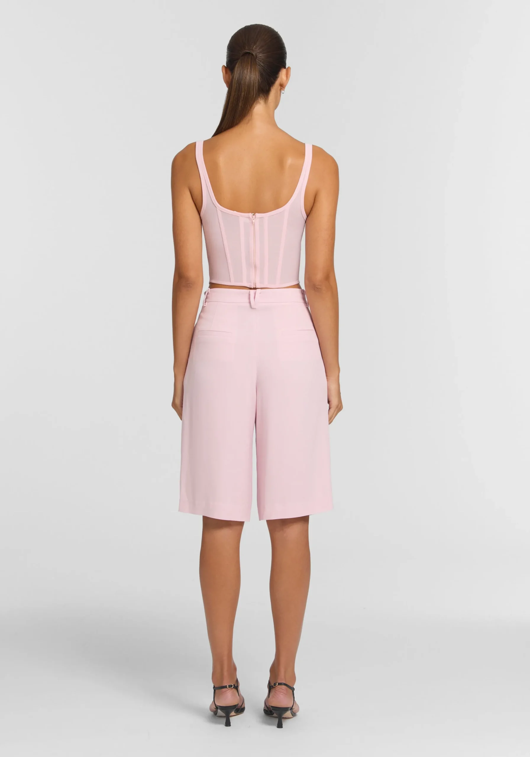 The Wanderlust Bustier, crafted from signature V&W powermesh in rosewater pink, redefines occasion dressing with considered elegance. Featuring a sweetheart neckline with pleated bust cups, panelled boning, and a softly curved hem, it creates a flattering, sculpted silhouette. Complete the look with the Monologue Short and Bombshell Blazer for a summer suiting moment that makes a statement.MADE IN AUSTRALIA