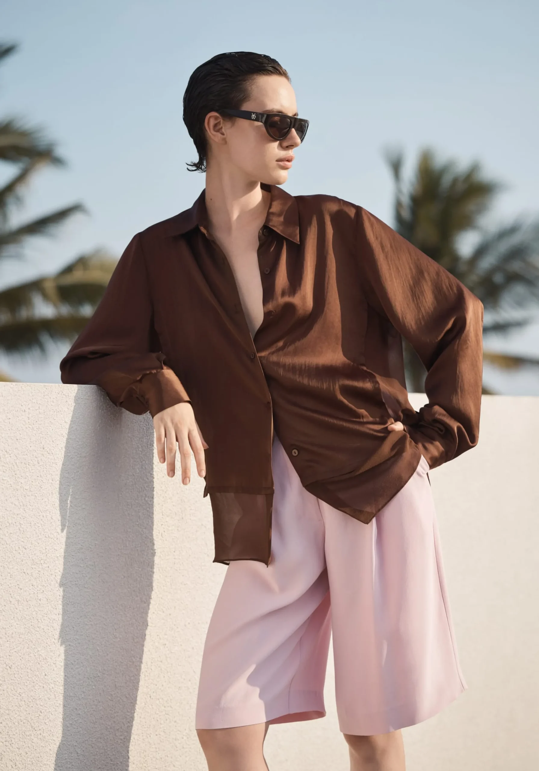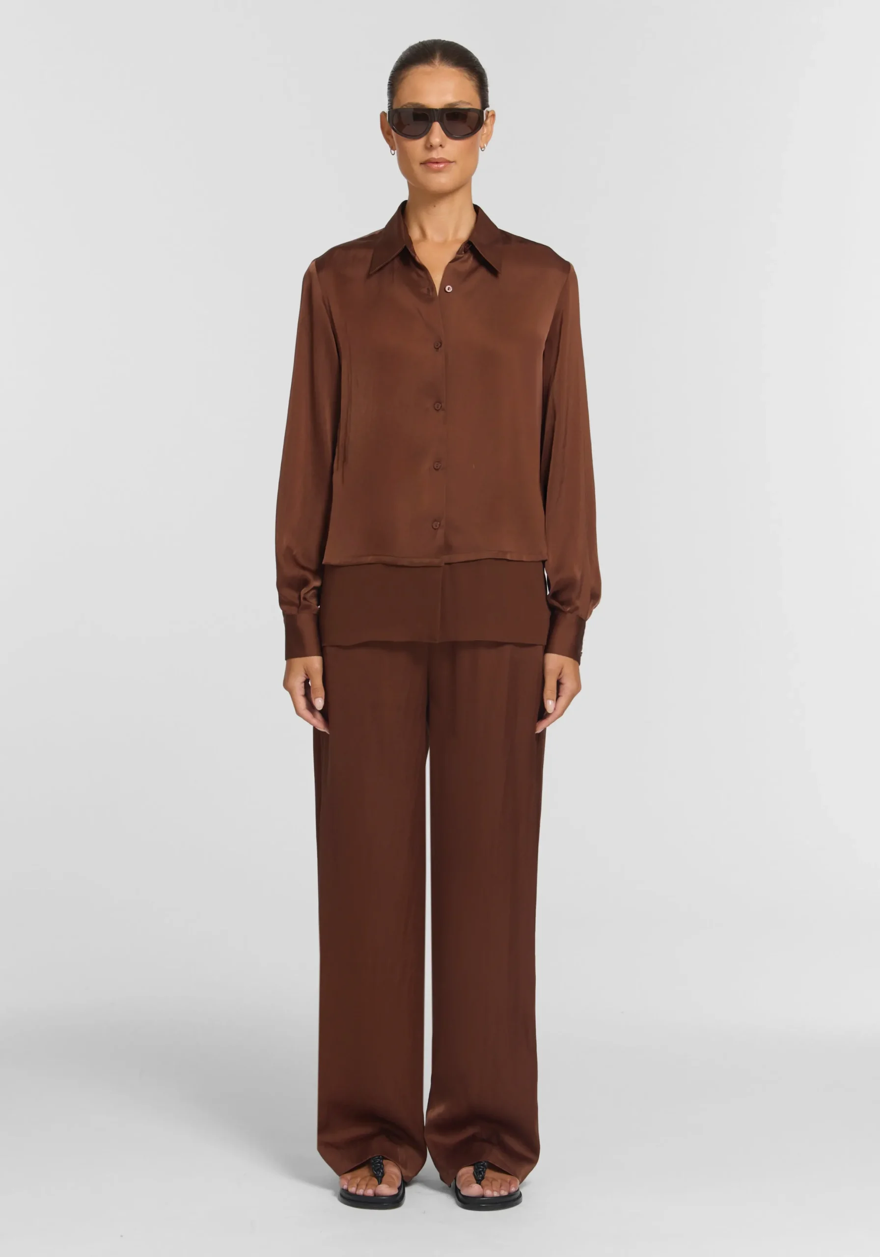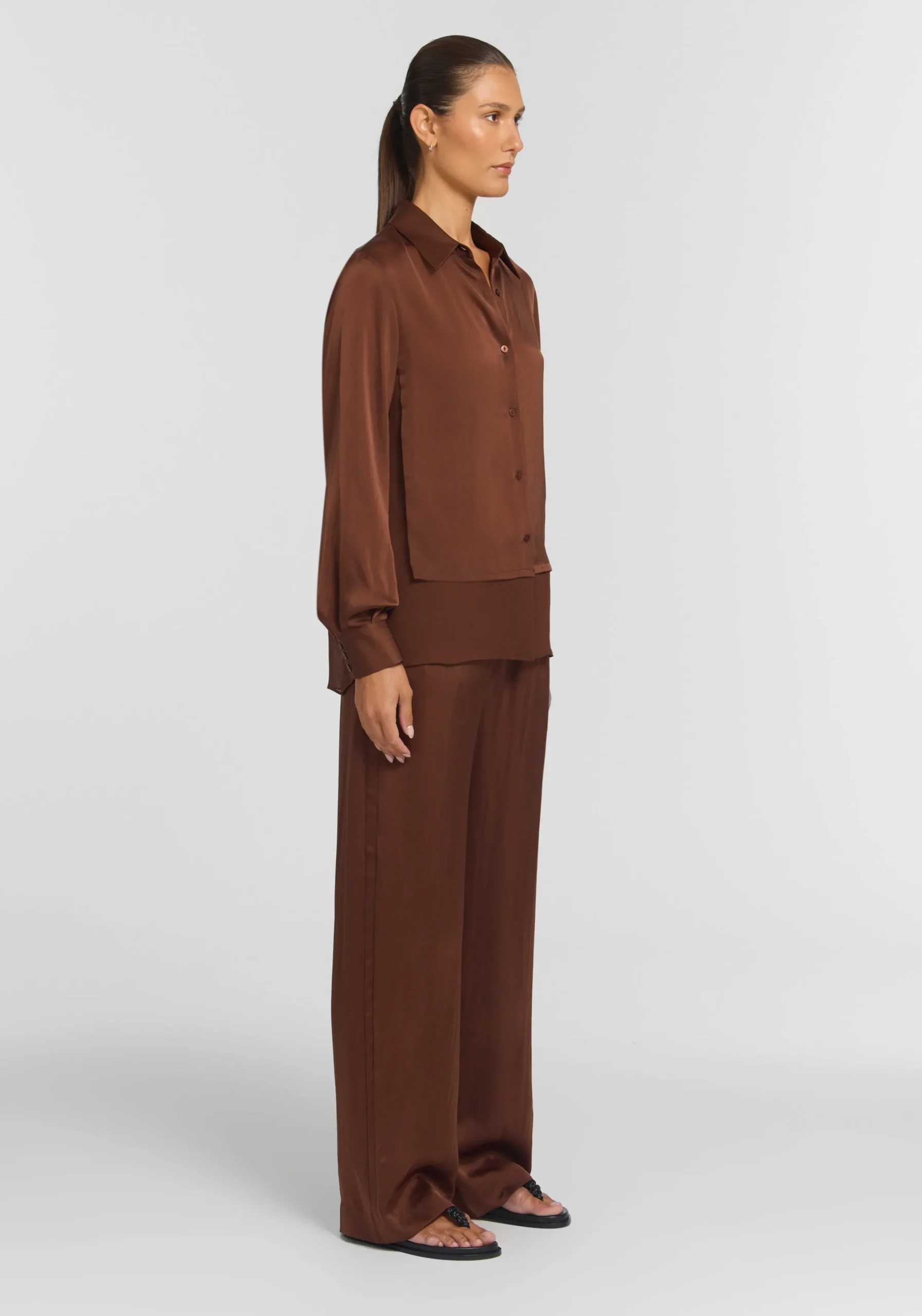 The Demigod Shirt, crafted in our signature cupro blend in chestnut brown, is an essential elevated with considered detailing. With a traditional placket, collar, buttoned cuffs and relaxed fit, it’s complete with a gold metal V&W pip at the back neck. Offering inherent lightness and a beautiful drape, it’s refined by contrast silk side panels that introduce a private sense of luxury. Pair with the Rocky Pant in the matching hue for an effortlessly versatile set.MADE IN AUSTRALIA