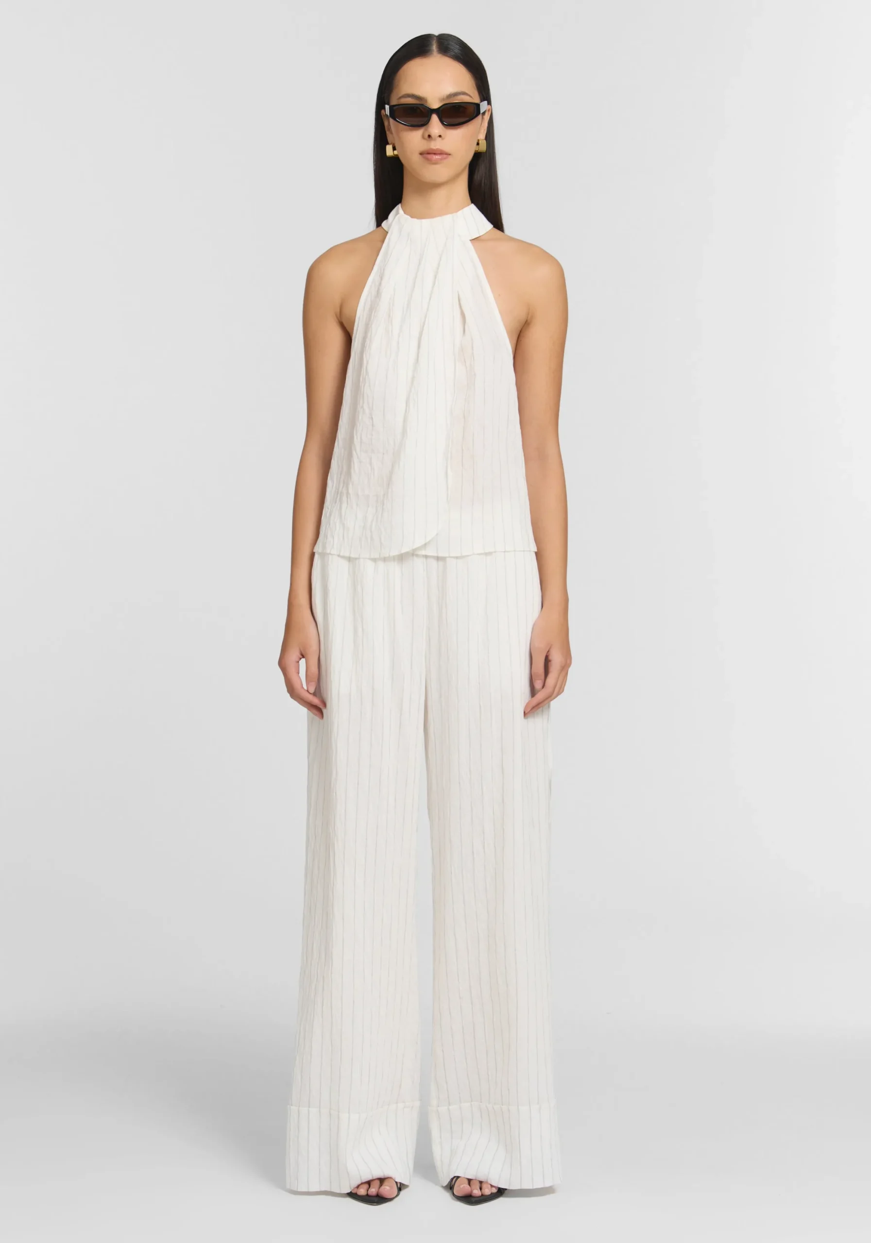 The Friendship Top, realised in a lightweight, fluid textile with a neutral stripe, embodies modern minimalism with restorative ease. Featuring a high-neck halter silhouette with crossover detailing, it moves seamlessly between quiet retreats and celebratory moments. Pair back with the Redford Trouser for the perfect summer uniform.MADE IN AUSTRALIA