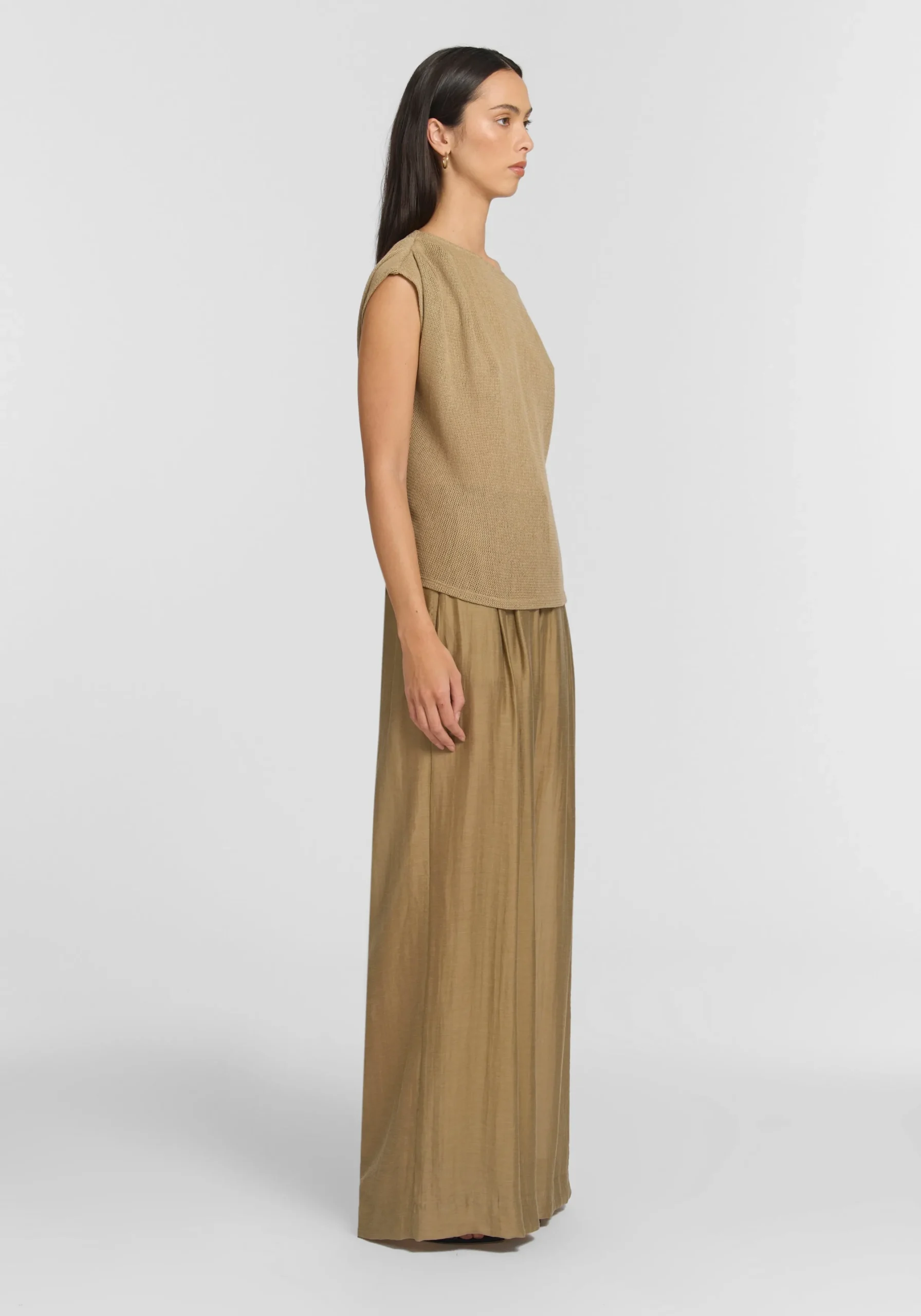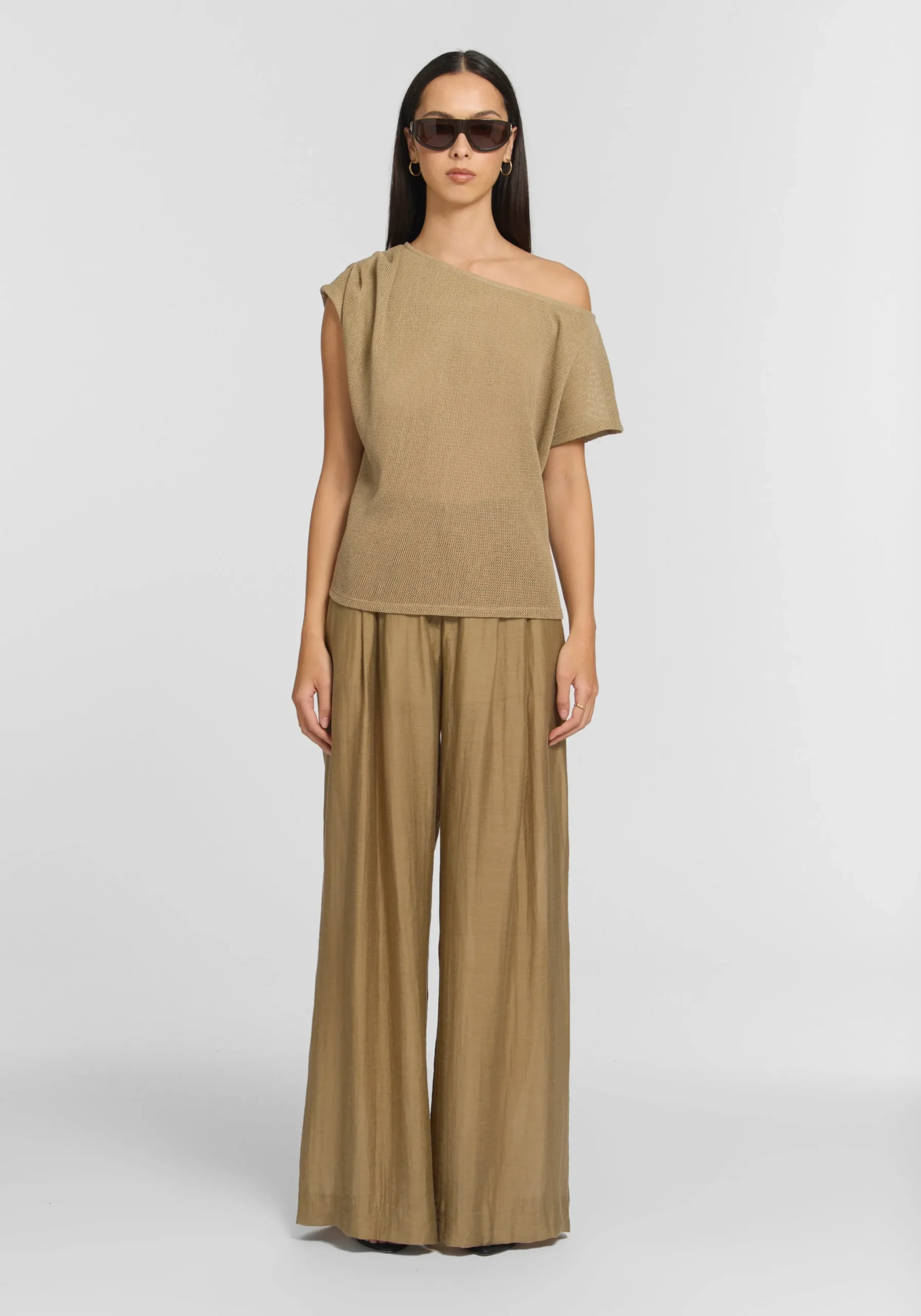 The Wildcard Tee, crafted in a soft sage, embodies effortless, modern ease. Its relaxed silhouette features a clean boat neckline and removable ties, allowing it to be worn loose and architectural or gently cinched. Pair with the matching Mayhem Skirt for an ethereal statement, or style back with this season’s sage offerings for a look perfect from beach to bar and moments in between.MADE IN AUSTRALIA