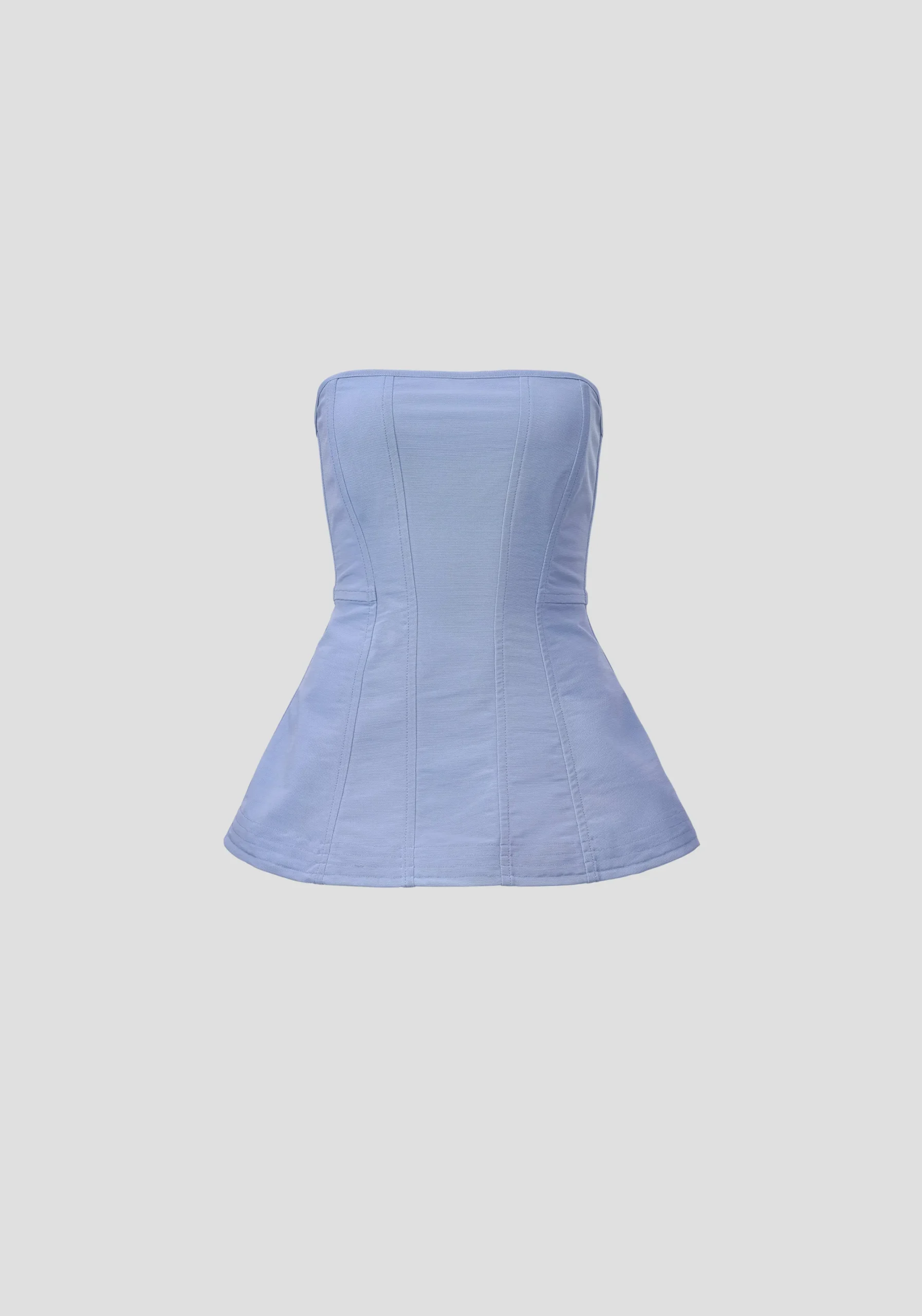 The Winslow Bustier, a modern classic in our signature V&W powermesh in a saltwater blue hue, showcases a flattering peplum silhouette. Expertly engineered with boning and double-layered front panels, it sculpts the silhouette with quiet, architectural power. Complete the look with the Draper Trouser for an elevated look that fuses structure and fluidity.